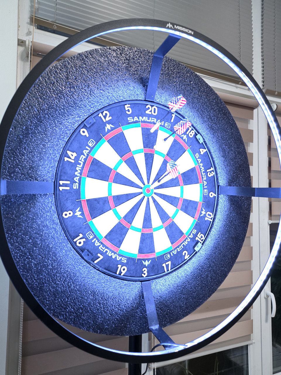 Набор для игры в дартс Mission мишень, защита, подсветка, дротики